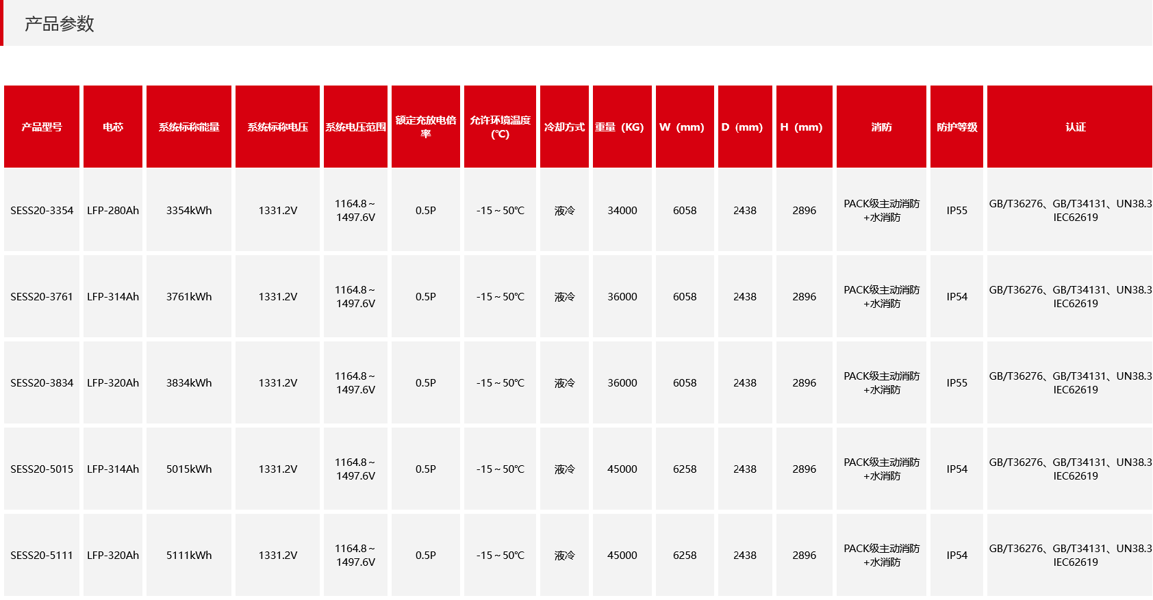 产品特征 安全可靠:电池包IP67设计,模组级主动消防方案、精准消防,极致安全 高集成:非步入式设计、1500V系统集电池、消防、温控为一体 安装灵活:模块化设计,预制舱式安装方案 智慧高效:实时状态监控,液冷温控系统,内部温差<5℃ 主要应用领域